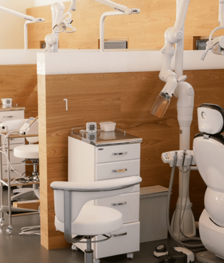 CEREB カートはすべての患者様に心地よく診療を受けていただけるように、チューニングをしています。またCEREB カートのうち1台は、高齢者やお身体の不自由な方のための“バリアフリー仕様”にしており、診療室、ユニットに車いすで移動できるようにしています。
