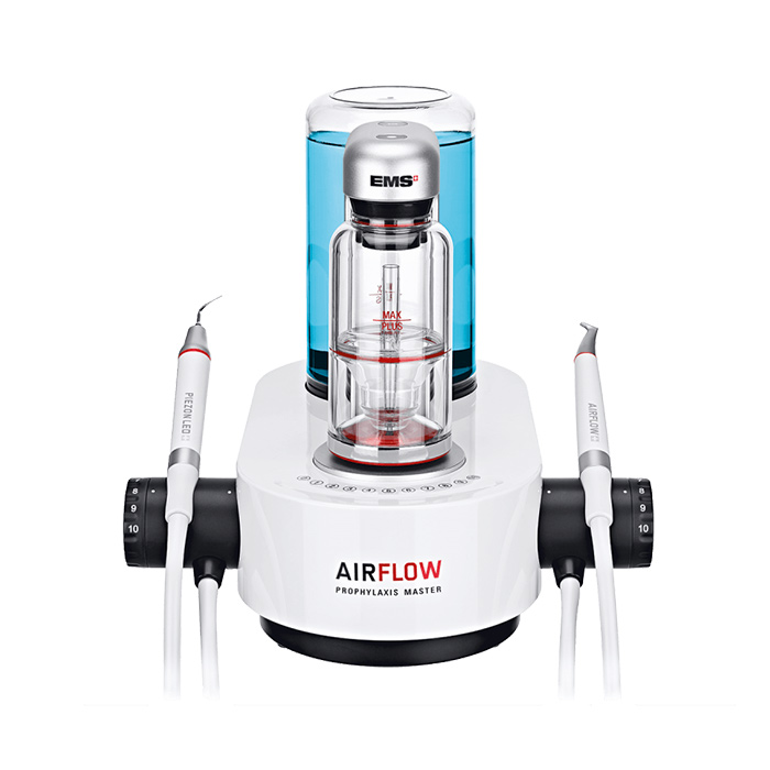 パウダーとお水を歯に吹き付けて洗浄する機械で、むし歯や歯周病の原因であるバイオフィルムの除去に高い効果を発揮する清掃機器です。当院では3台導入しております。