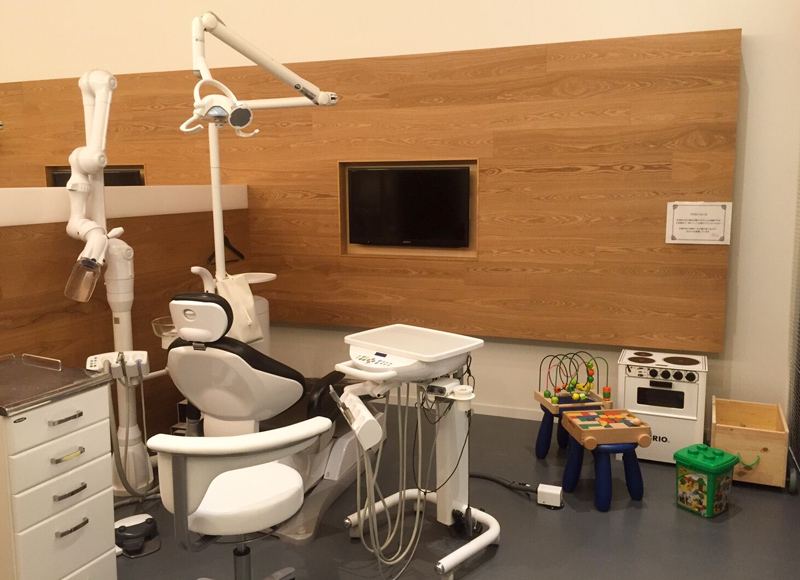 お子様が楽しんで自ら通ってくれる場所を目指し、診療室には木の電車が走り、お子様専任のスタッフがお子様との関係づくりを大切に治療に当たっています。