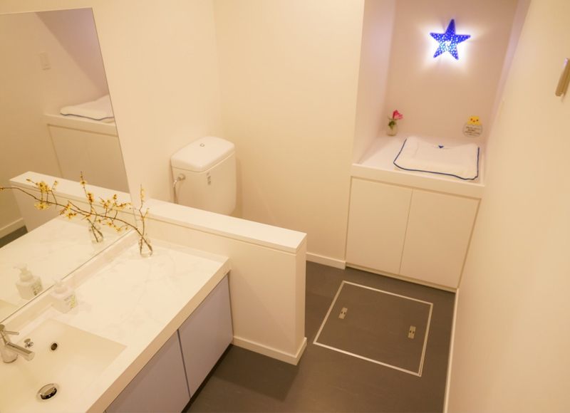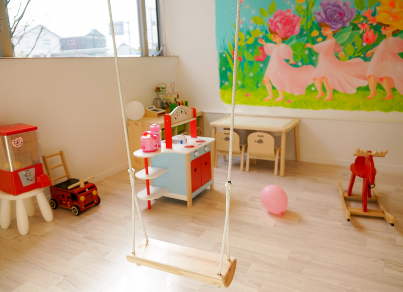 ブランコのあるキッズスペース、託児所、ファミリールーム、キッズトイレ、オムツ交換スペースなどお子さまに優しい設備を備えています。